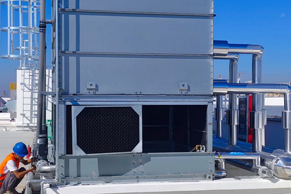 防凍:在寒潮期間,環(huán)境溫度可能會很低,導致設備出現凍結、凝固、析出結晶等現象。因此,需要確保設備在寒潮期間保持適當的溫度,避免超出正常工作溫度區(qū)間,對于正在使用中的設備,需要開啟循環(huán)水塔或冰水機的電輔助加熱功能,配有散熱風扇調節(jié)器的循環(huán)水塔,可以調節(jié)水塔的散熱扇的開啟溫度,另外,為了降低循環(huán)冷卻水的凝固點,可在循環(huán)的水路中添加適量的乙二醇或防凍液,一般按量添加約35%即可。